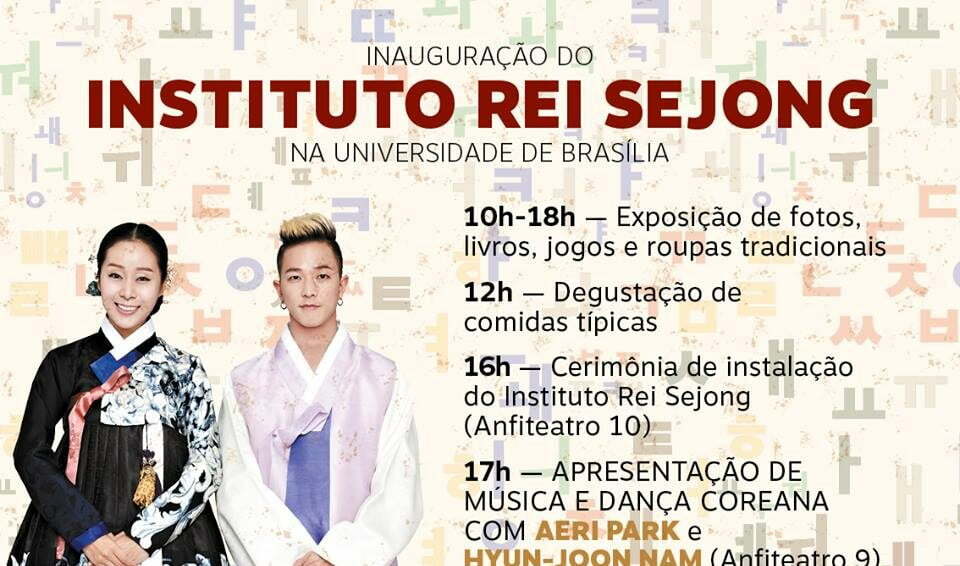 O Instituto Rei Sejong abrirá as portas na capital federal no dia 3 de agosto e terá como sede a UnB – Universidade de Brasília