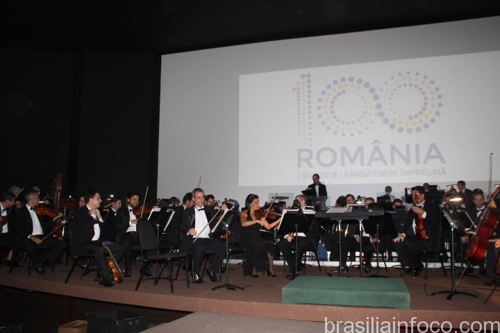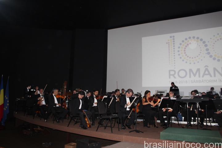 O início da recepção foi marcado por coquetel e logo após as 20hs aconteceu a apresentação da Orquestra sinfônica de Brasília, que iniciou tocando o hino Brasileiro seguido pelo hino da Romênia.